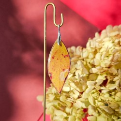 Bijoux végétaux réalisés à partir de feuilles, pétales et fleurs que je fais sécher sous presse pour retirer l'humidité de la plante. Puis je les recouvre de plusieurs fines couches de résine que je sculpte à la forme du végétal. Je les monte ensuite sur des montures en argent, c'est un métal anti-bactérien, réparable et recyclable.