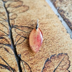 Pendentif myrtiller d'automne, réalisé avec une feuille de myrtiller récolté à l'automne et incluse dans plusieurs couches de résine, retravaillées à la forme de la feuille et monté sur de l'argent 925.