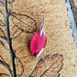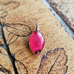 Pendentif myrtiller d'automne, réalisé avec une feuille de myrtiller récolté à l'automne et incluse dans plusieurs couches de résine, retravaillées à la forme de la feuille et monté sur de l'argent 925.