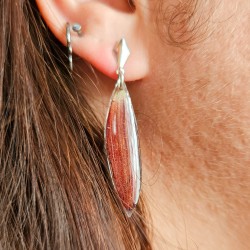Ces boucles d'oreilles délicates sont réalisées à partir pétales de tournesols soigneusement préservé dans de la résine. Chaque pièce est sculptée à la main pour suivre la forme naturelle de la plante puis montée sur un support en argent 925.