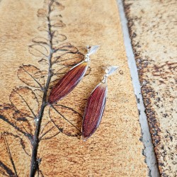 Chaque bijou est une pièce unique, née de la rencontre entre la nature et le travail artisanal. Je réalise mes créations à partir de feuilles, pétales et fleurs que je fais sécher sous presse afin d’en retirer l’humidité. Une fois secs, je les recouvre de fines couches de résine, sculptées à la main pour épouser la forme naturelle du végétal. Les éléments sont ensuite montés sur des supports en argent 925, un métal noble, antibactérien, réparable et recyclable.