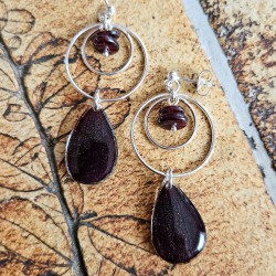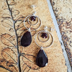 Ces boucles d'oreilles délicates sont réalisées à partir de pétales de cosmos soigneusement préservé dans de la résine. Chaque pièce est sculptée à la main pour suivre la forme naturelle de la plante puis montée sur un support en argent 925 avec des pierres de grenat.