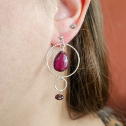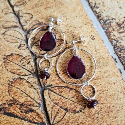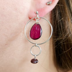 Ces boucles d'oreilles délicates sont réalisées à partir de pétales de cosmos soigneusement préservé dans de la résine. Chaque pièce est sculptée à la main pour suivre la forme naturelle de la plante puis montée sur un support en argent 925 avec des pierres de grenat.