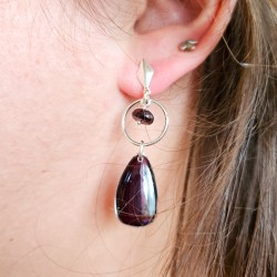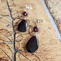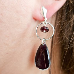 Ces boucles d'oreilles délicates sont réalisées à partir de pétales de cosmos soigneusement préservé dans de la résine. Chaque pièce est sculptée à la main pour suivre la forme naturelle de la plante puis montée sur un support en argent 925 avec des pierres de grenat.